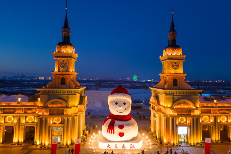 Ενα?ρια φωτογραφ?α με drone που τραβ?χτηκε στι? 17 Δεκεμβρ?ου 2024 δε?χνει ?ναν τερ?στιο χιον?νθρωπο στο Χ?ρμπιν, στη βορειοανατολικ? επαρχ?α Χε?λονγκτζι?νγκ τη? Κ?να?. Φωτογραφ?α: Xinhua