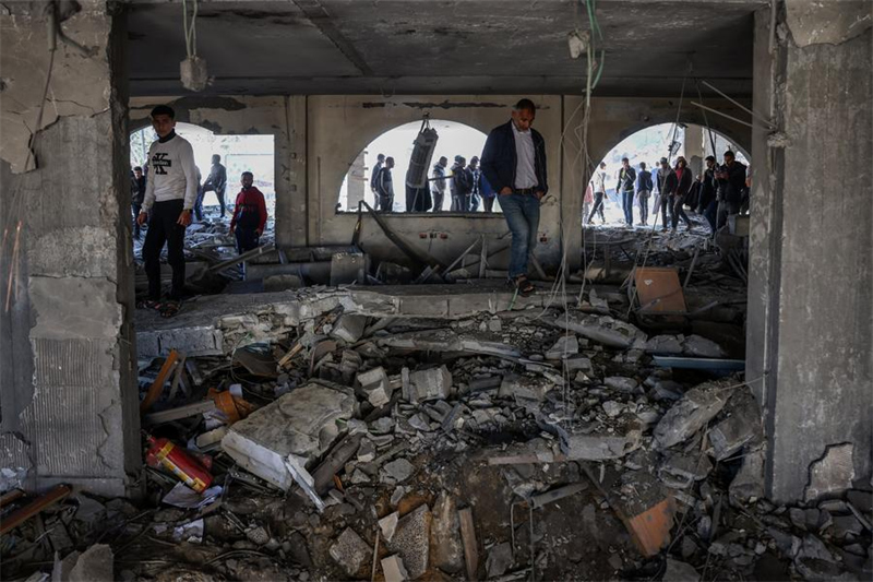?νθρωποι στα συντρ?μμια κτιρ?ου που καταστρ?φηκε απ? ισραηλιν? βομβαρδισμ? στο κ?ντρο τη? π?λη? Χαν Γιουν??, στη ν?τια Λωρ?δα τη? Γ?ζα?, στι? 2 Ιανουαρ?ου 2025. (Φωτογραφ?α / Xinhua)