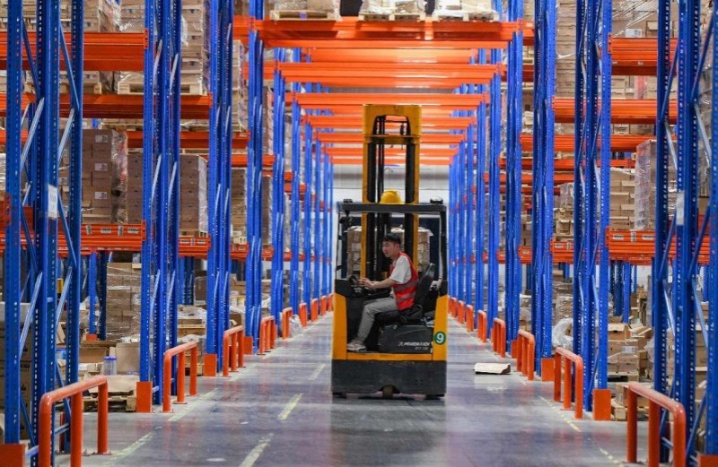 ?να? ?νδρα? εργ?ζεται σε μια αποθ?κη εισαγ?μενων προ??ντων στη Ζ?νη Ελε?θερου Εμπορ?ου Τζινγ? στην Τζ?νχουα, επαρχ?α Τσετσι?νγκ, ανατολικ? Κ?να. (Φωτογραφ?α: People's Daily Online)